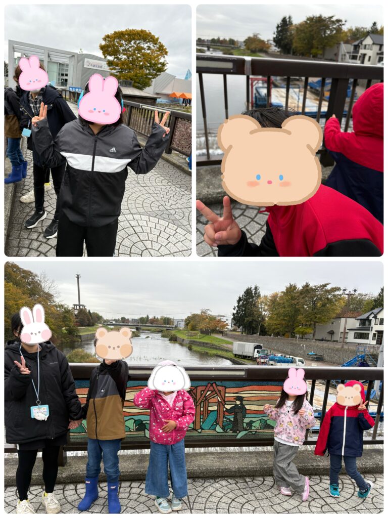 橋の上から鮭を見つけて「いたいた!!」と楽しそうに見ていましたよ(^^)