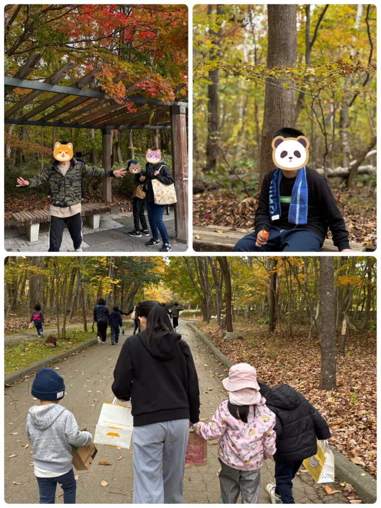みんなで公園へ紅葉を見ながら落ち葉やドングリ拾いをしてきましたよ(^^)