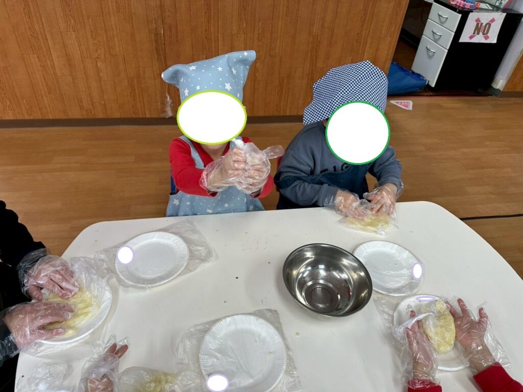 皮をむいたり、こねて成型したりの作業をすることを楽しみ、出来上がりもおいしく食べました。
