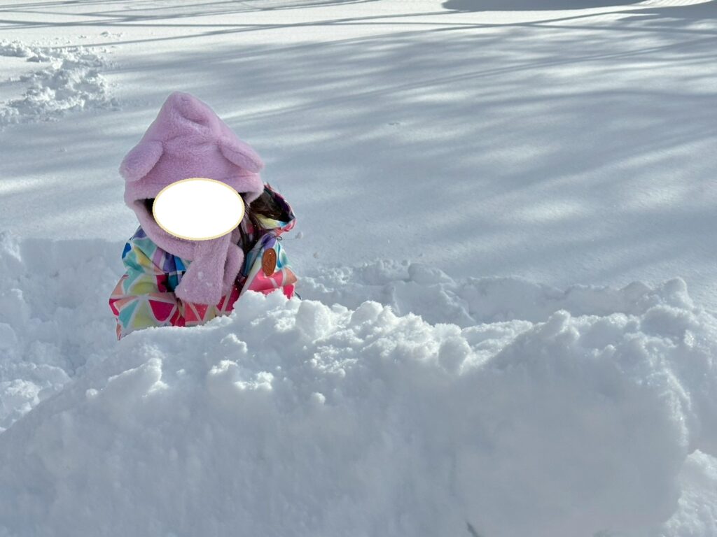 新雪の道なき道をそりで進んでコースを作ったり、スコップでお山を作ったりを楽しみました!。