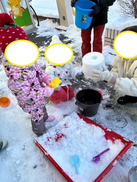 お休み明けから元気に雪遊びを楽しみましたよ(^^♪。